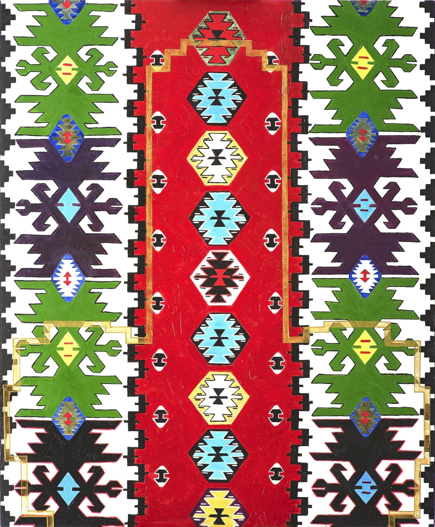 Bilyana: The painting 'To defend and protect' is actually one of balkan kilims (old fashion carpet).